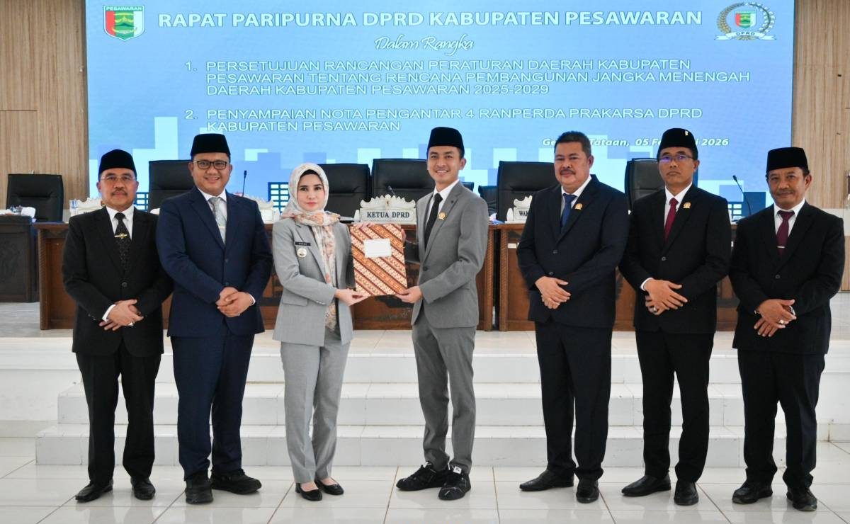 Pemerintah Kabupaten Pesawaran bersama DPRD Kabupaten Pesawaran menggelar Rapat Paripurna Persetujuan Rancangan Peraturan Daerah (Ranperda) tentang Rencana Pembangunan Jangka Menengah Daerah (RPJMD) Kabupaten Pesawaran Tahun 2025–2029, sekaligus Rapat Paripurna Penyampaian Nota Pengantar Empat Ranperda Prakarsa DPRD, yang berlangsung di Gedung Serba Guna (GSG) Pemkab Pesawaran, Kamis (5/2/2026).